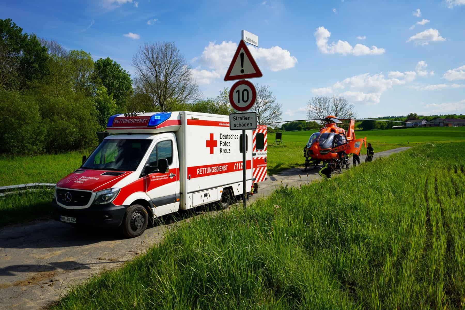 Verkehrsunfall nahe Altgandersheim: Rettungshubschrauber im Einsatz