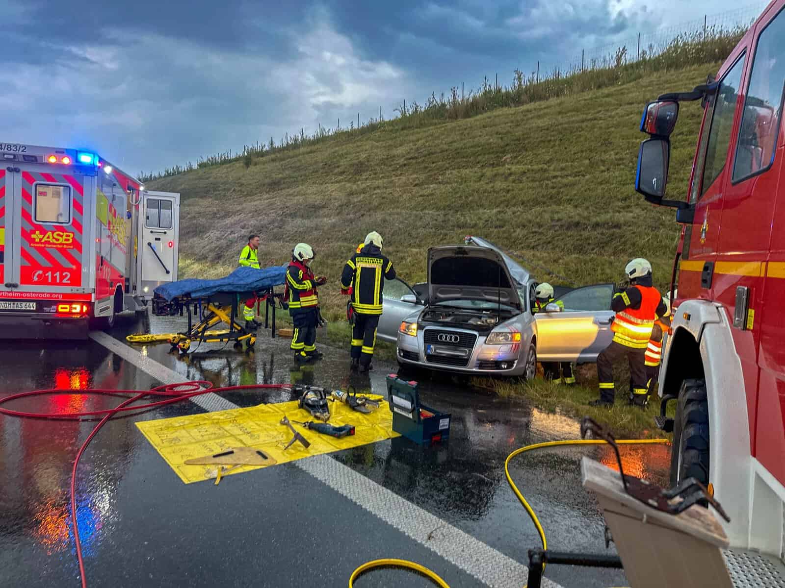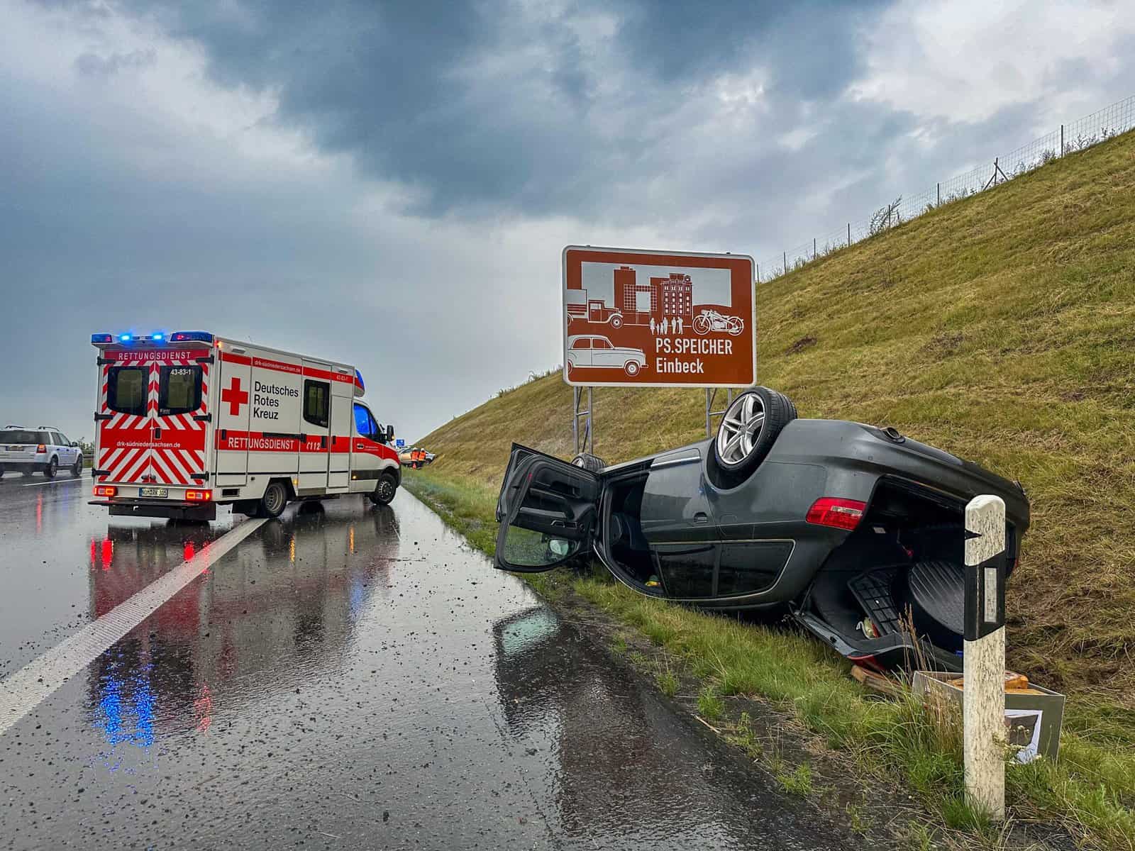 Nur wenig später kam es zum nächsten Unfall in identischer Fahrtrichtung. Zwischen den Anschlussstellen Northeim-West und Northeim-Nord kam es zu einem Unfall mit mehreren Fahrzeugen. Ein Fahrzeug überschlug sich und blieb auf dem Dach liegen. Ein Weiteres landete im Graben. Hier musste für eine Technische Rettung das Dach abgeschnitten werden. Die Feuerwehr Höckelheim, der Rettungsdienst und die Polizei waren hier mit etwa 25 Kräften vor Ort. Vier Patienten wurden vom Rettungsdienst versorgt, zwei kamen ins Krankenhaus.