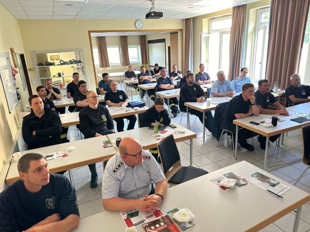 Die Ausbilder Jan-Eric Loy und Florian Koch waren ebenso zufrieden wie die Brandschützer, die jetzt mit neuem Wissen und Infomaterial zurück in ihren Einheiten gut vorbereitet sind auf das, was die Zukunft bringt. Wir danken für das große Interesse an dieser Schulung!