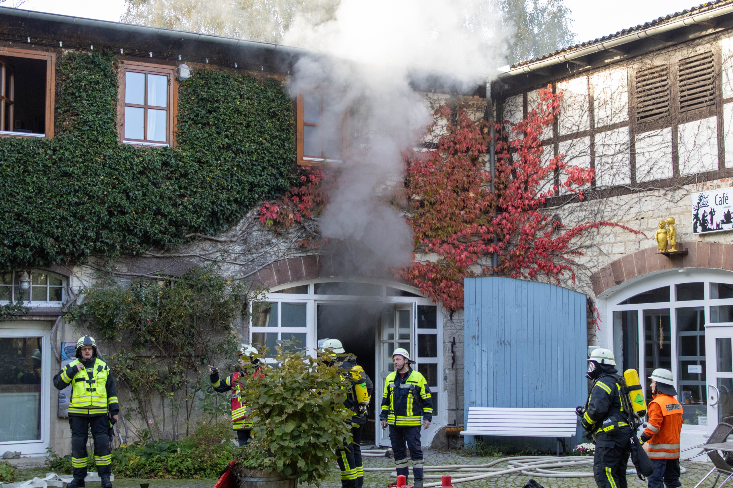 Brand auf Klosterhügel: Feuerwehren in Werkstatt in Brunshausen im Einsatz