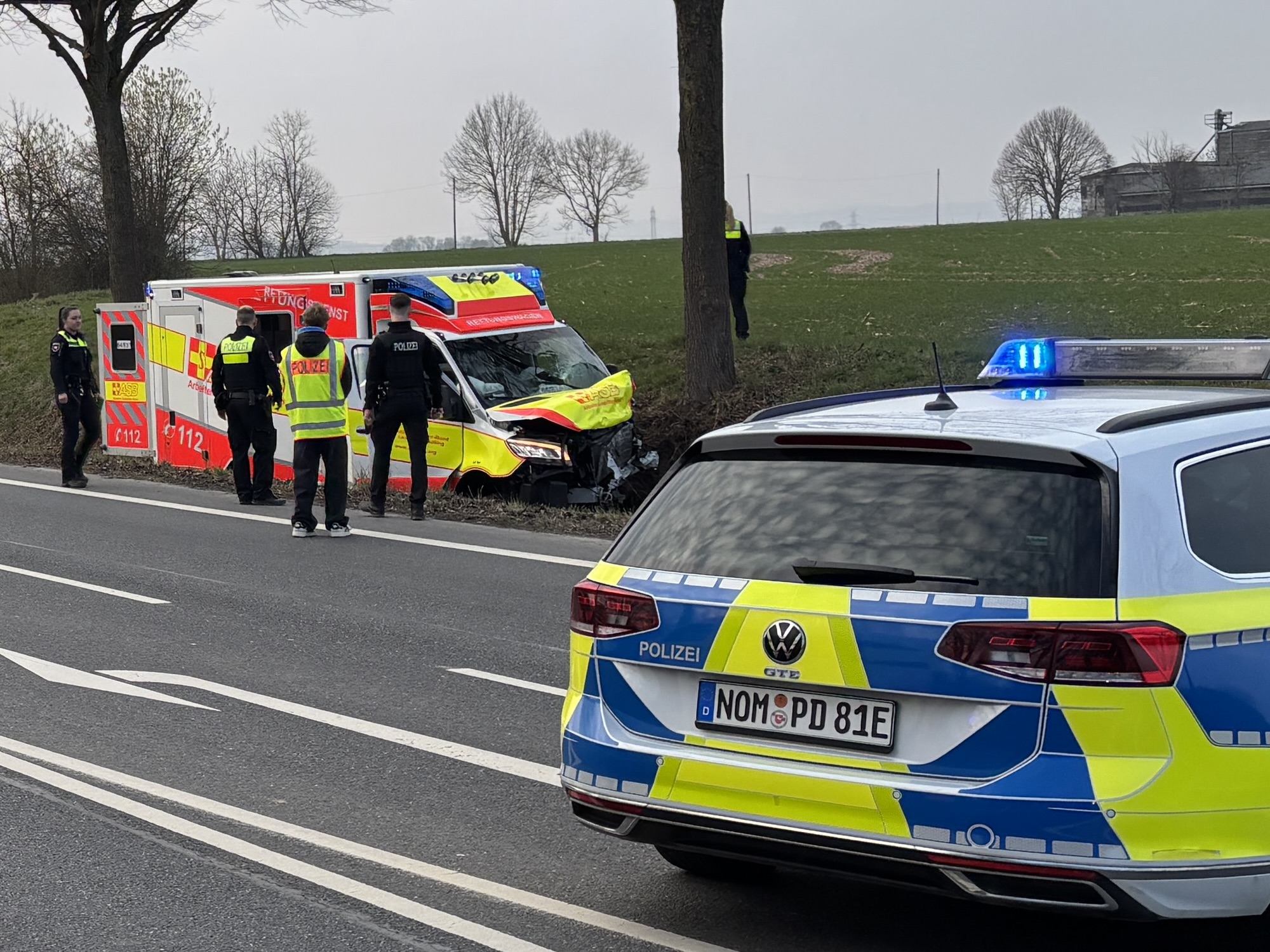 Unfall mit Rettungswagen auf B446 bei Lütgenrode