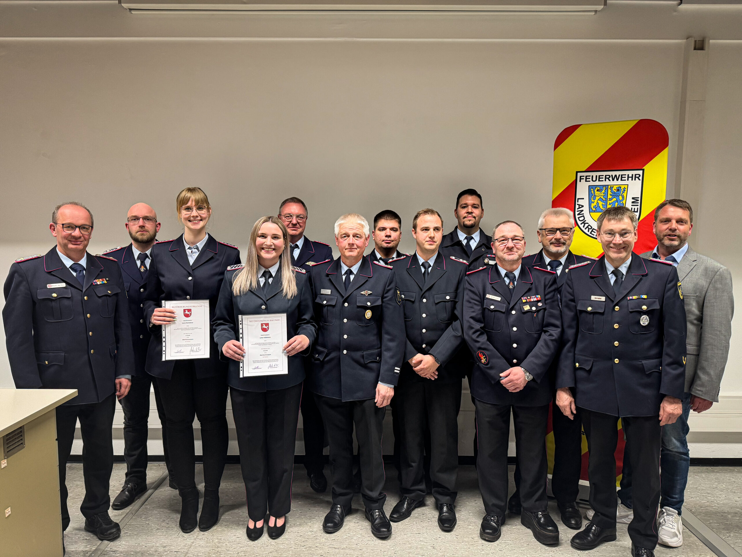 Die Beförderung zum Löschmeister hat Lukas Peters als Kreisausbilder erhalten. Lena Volkmann, Lena Scheibner, Lukas Wickmann und Fabian Fihlon haben die Beförderung zu Oberlöschmeistern für ihre Tätigkeit als Kreisausbilder erhalten. Björn Plumhoff hat die Beförderung zum Oberlöschmeister für seine Tätigkeit als Gruppenführer der Fachgruppe Logistik und Technik des Landkreises Northeim erhalten.