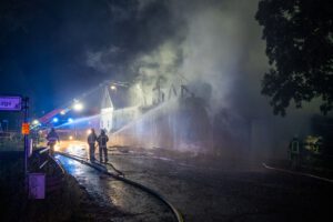 In der Scheune gelagerte landwirtschaftliche Geräte sowie Stroh fielen den Flammen zum Opfer. Dank des schnellen und reibungslosen Handelns aller eingesetzten Kräfte konnte ein Übergreifen des Feuers verhindert werden.