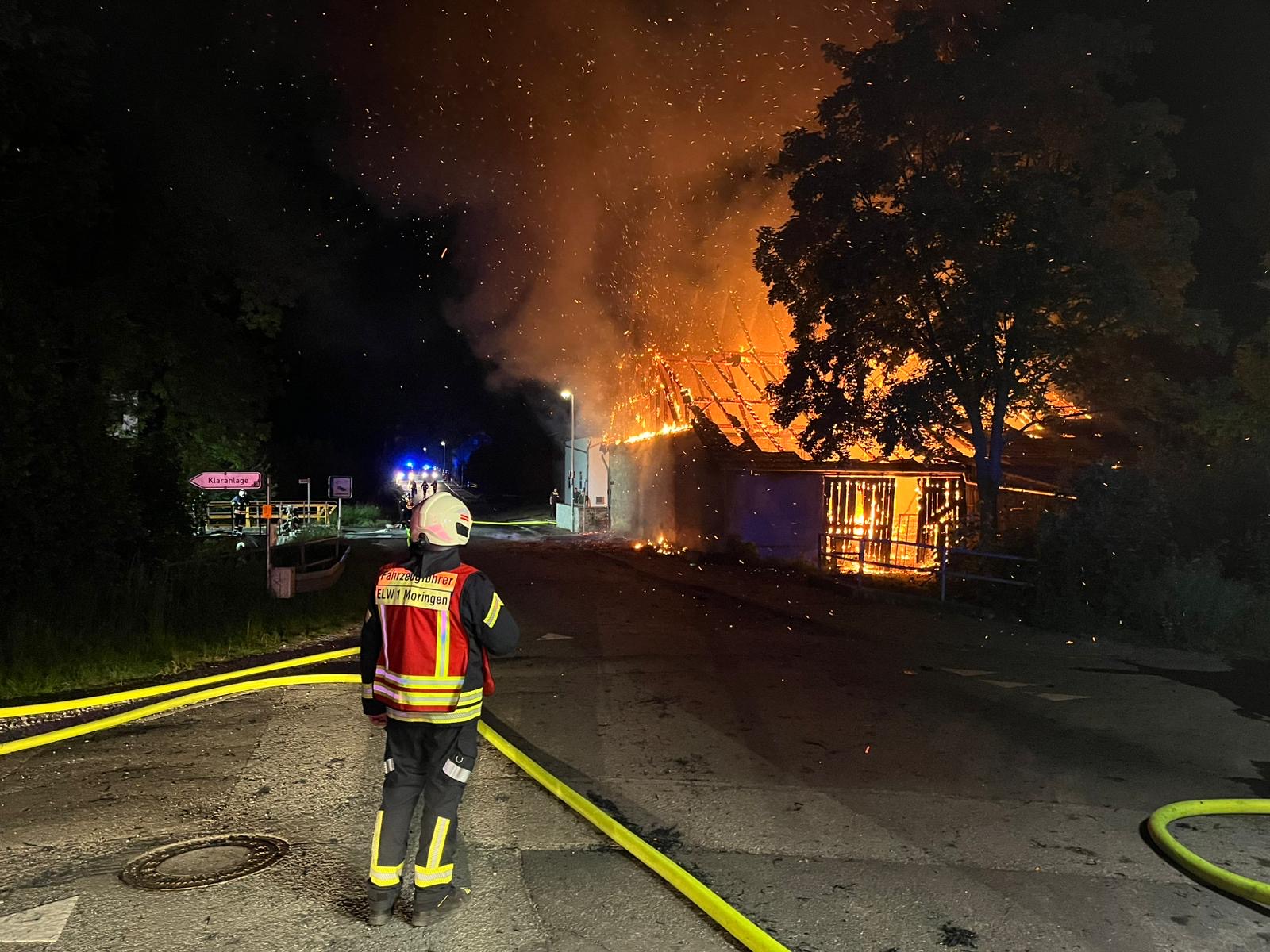 Weit sichtbar loderten Flammen über Moringen, zahlreiche Anrufer meldeten gegen 01:58 Uhr eine brennende Scheune in der Hagenbergstraße.
