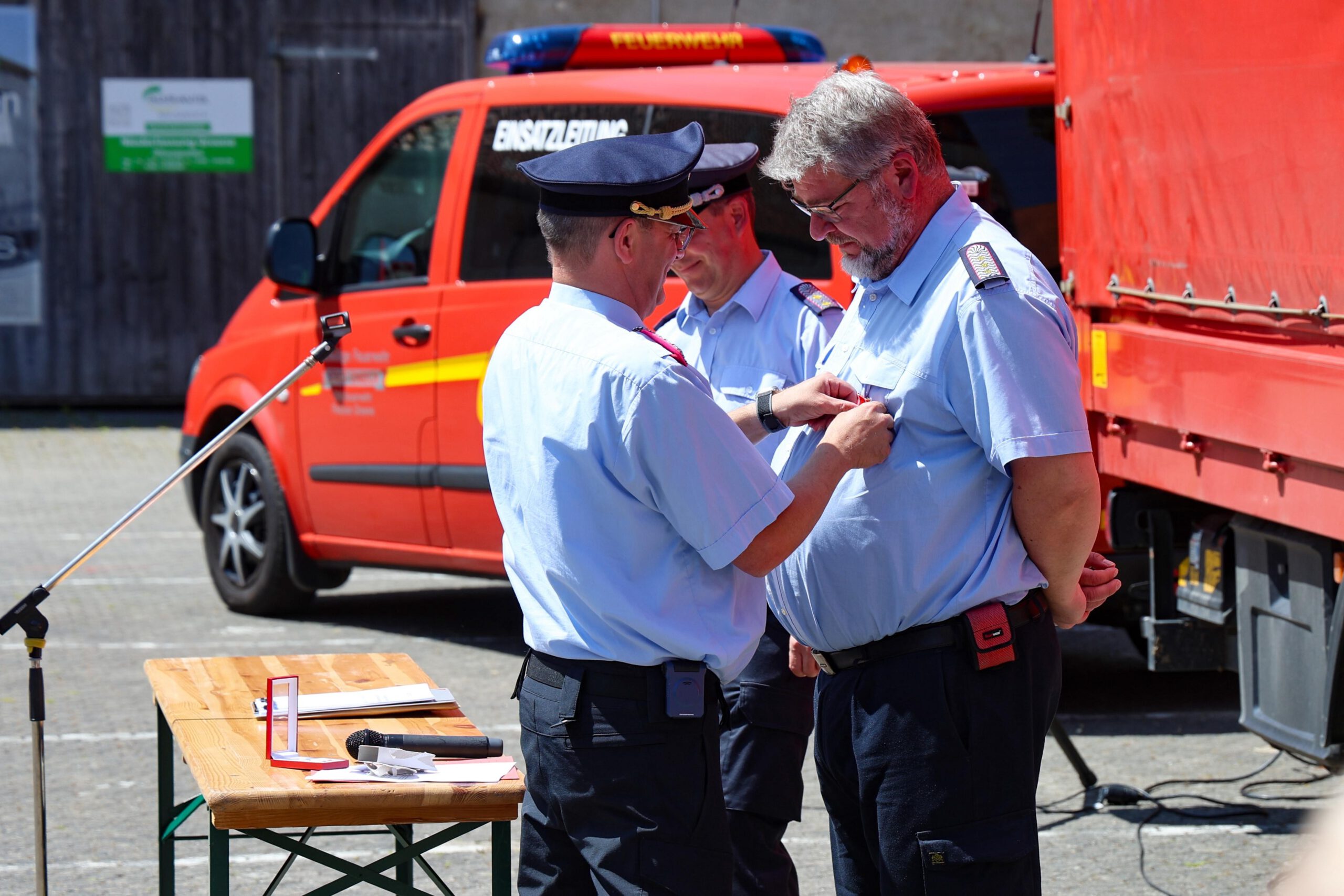 Mit Ablauf des Monats Juni endet in diesem Jahr die sechsjährige Amtszeit der Funktionsträger der Feuerwehrbereitschaft 1 – und damit auch die Amtszeit von Bereitschaftsführer Seidel. Florian Koch übernimmt als Bereitschaftsführer, Jan-Eric Loy als Stellvertreter und Dennis Bodenstein als Leiter der Führungsgruppe. „Damit weiß ich die Bereitschaft in sehr guten Händen“, sagte Marcus Seidel.