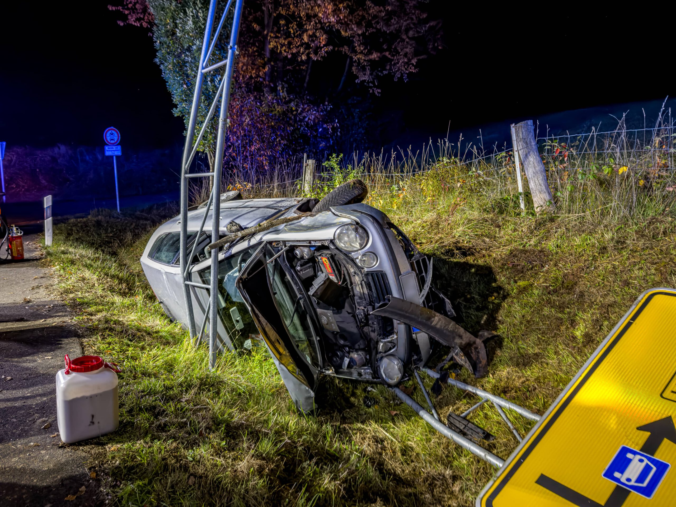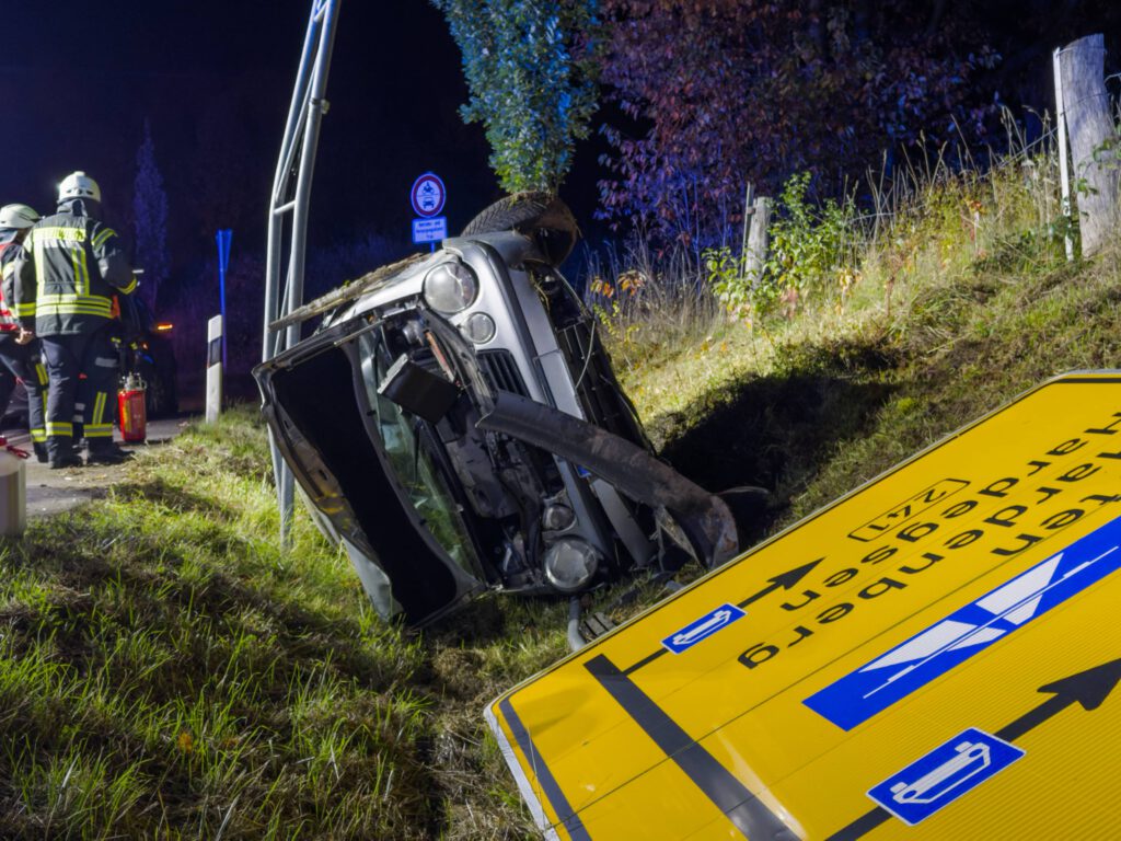 Auf der Kreisstraße 432 zwischen Schlarpe und der Siedlung Goseplack kam es am Freitagabend, 10.10.2025, gegen 20:35 Uhr zu einem Verkehrsunfall. Ein PKW kam von der Fahrbahn ab, überschlug sich mehrfach und kam auf der Seite im Straßengraben zum Liegen. Der Fahrer hatte das Fahrzeug beim Eintreffen der Einsatzkräfte bereits verlassen.