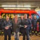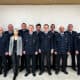 Zum Foto: es zeigt von links, Jonas Klanke, Christopher Chors, den Abschnittsbrandmeister West Markus Groß, von der Stadt Hardegsen Britta Scholz, Kevin...