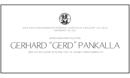 Der Kreisfeuerwehrverband Northeim trauert um sein Ehrenmitglied Ehrenabschnittsleiter Gerhard Pankalla.
