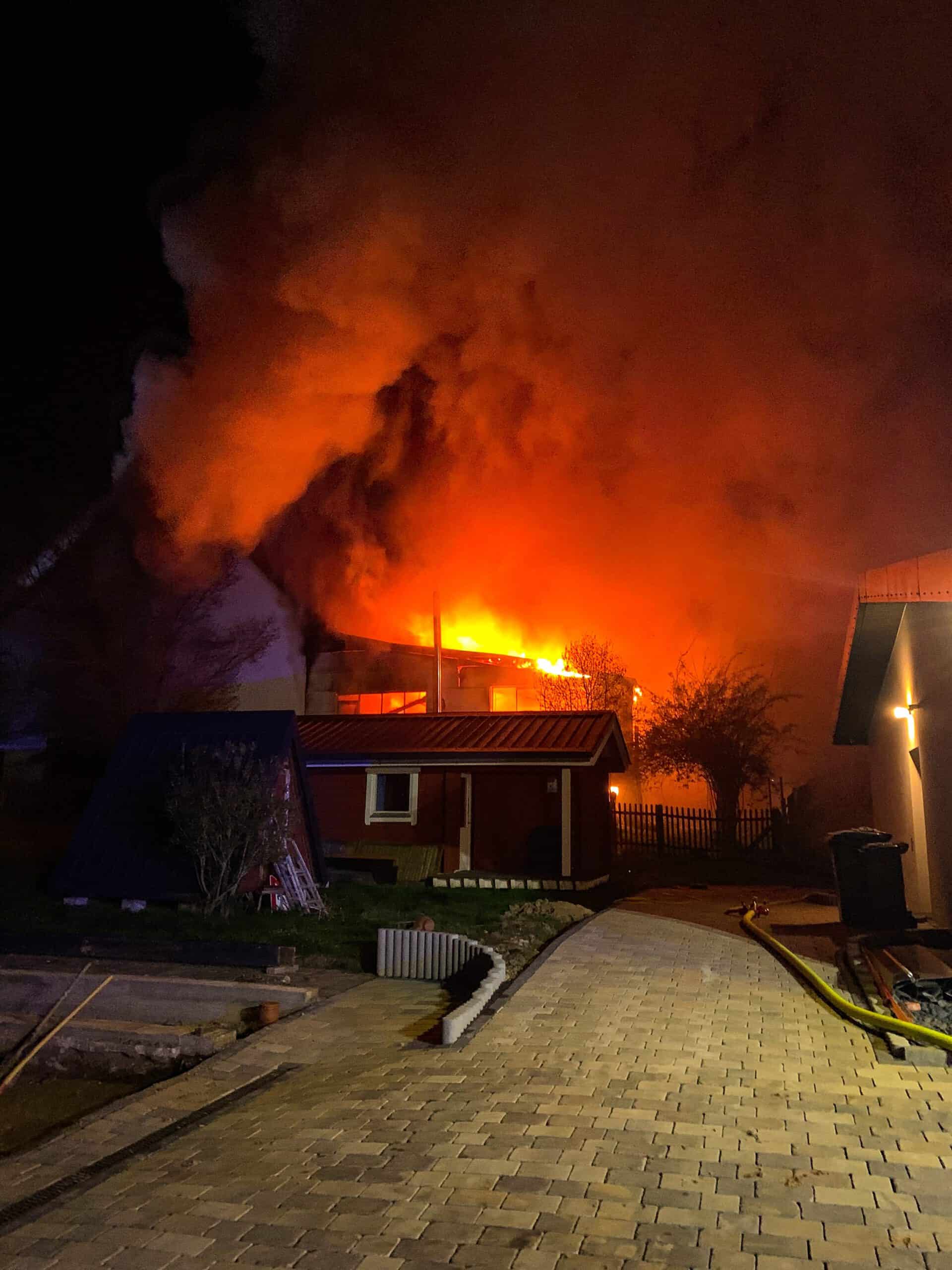 „Dachstuhlbrand“ – so lautete die erste Meldung für die rund 120 Einsatzkräfte von Feuerwehr, Rettungsdienst und Polizei am frühen Donnerstagmorgen.